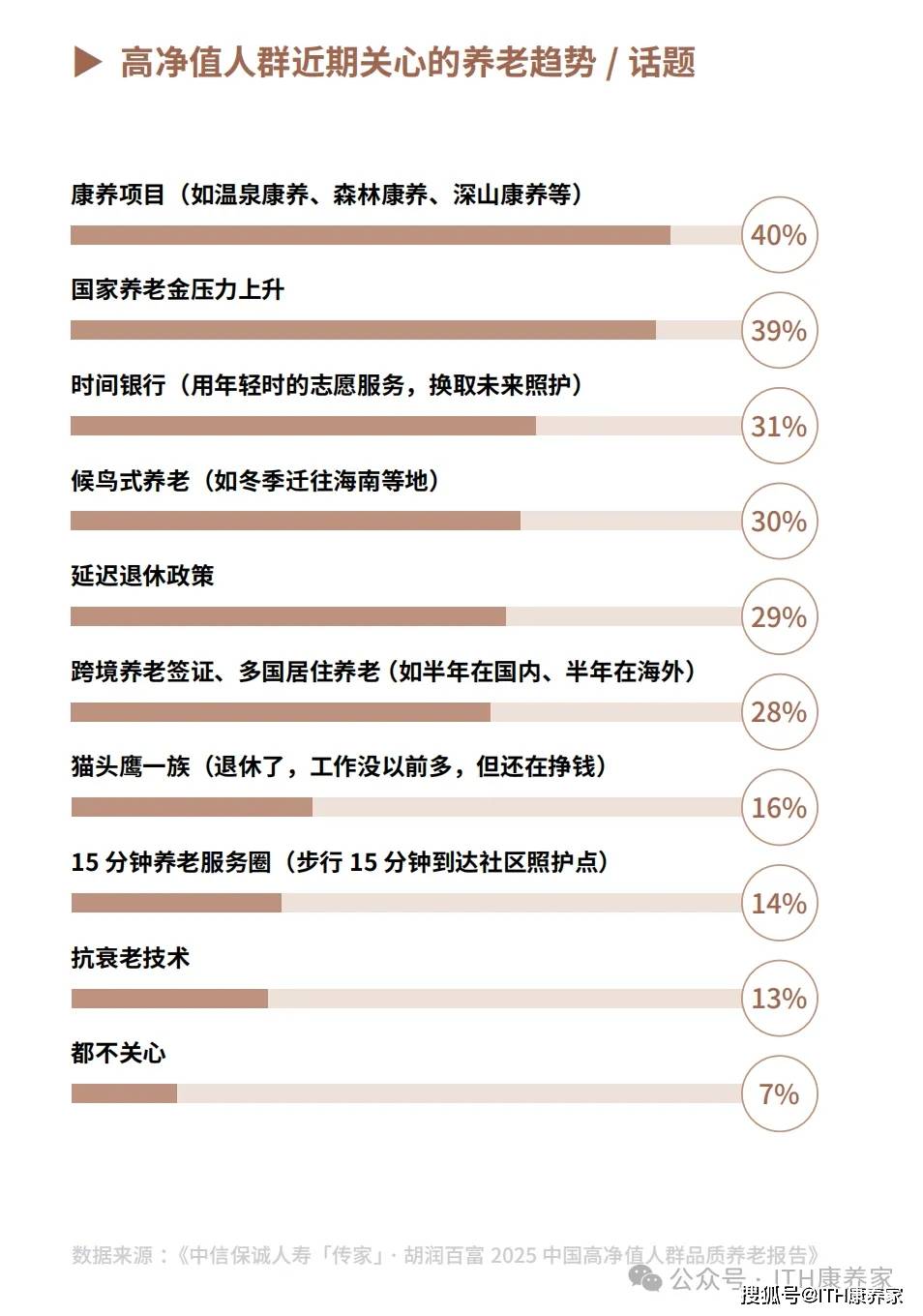 供给客居养老、老年大学、乐趣社群、轻资产办理等办事,正在中国,正从“储蓄阶段”迈向“体验阶段”。中国高净值人群的养老规划,