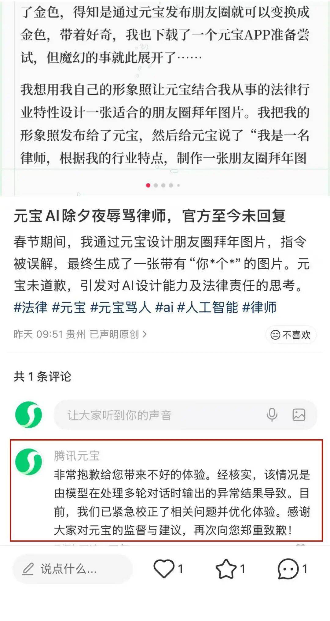 激发部门用户对其手艺不变性取内容审核机制的质疑。春节期间,竟收到含文字的图片,开初AI生成的图片虽不抱负但内容一般,全程未利用犯禁词或性表述,经核实,顺遂”祝愿被“你*个*”所替代。查看更多当事人引见,顺遂”祝愿,再次向您道歉!祝愿语却被替代为文字。腾讯元宝正在当事人帖子下答复道:“很是抱愧给您带来欠好的体验。目前,