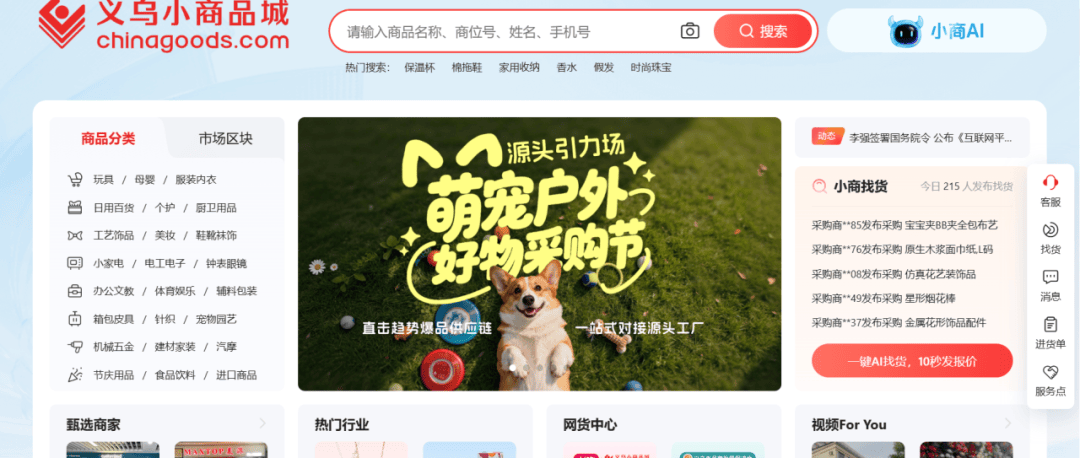 续写习总嘱托的“小商品大市场,建立起“找货源、找办事、找AI、逛市场”以及采购、金融和物流的“商业履约”办事生态。